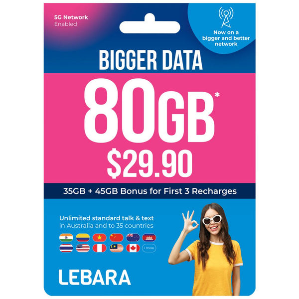 - Unlimited talk and text (Australia + 28 Selected Countries)